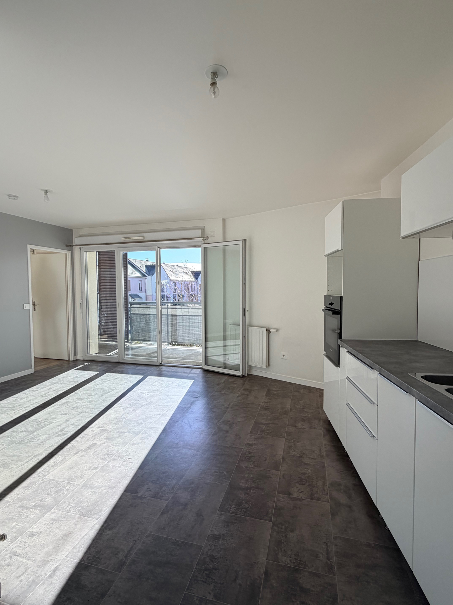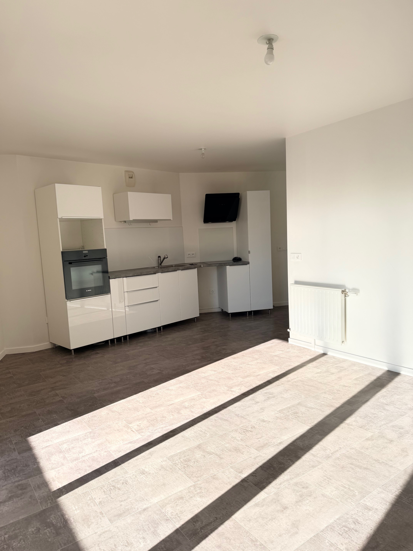 MORANGIS - rue de la Paix. Immeuble neuf avec ascenseur, digicode, interphone - Appartement au 1er étage comprenant séjour avec cuisine ouverte et balcon (5 m2), chambre, salle de bains avec WC - 1 place Parking extérieur - N7 à 2' - BUS 399 et commerces sur place - CHAUFFAGE ET EAU CHAUDE COLLECTIF (compris dans le LOYER). LOUE LOI PINEL